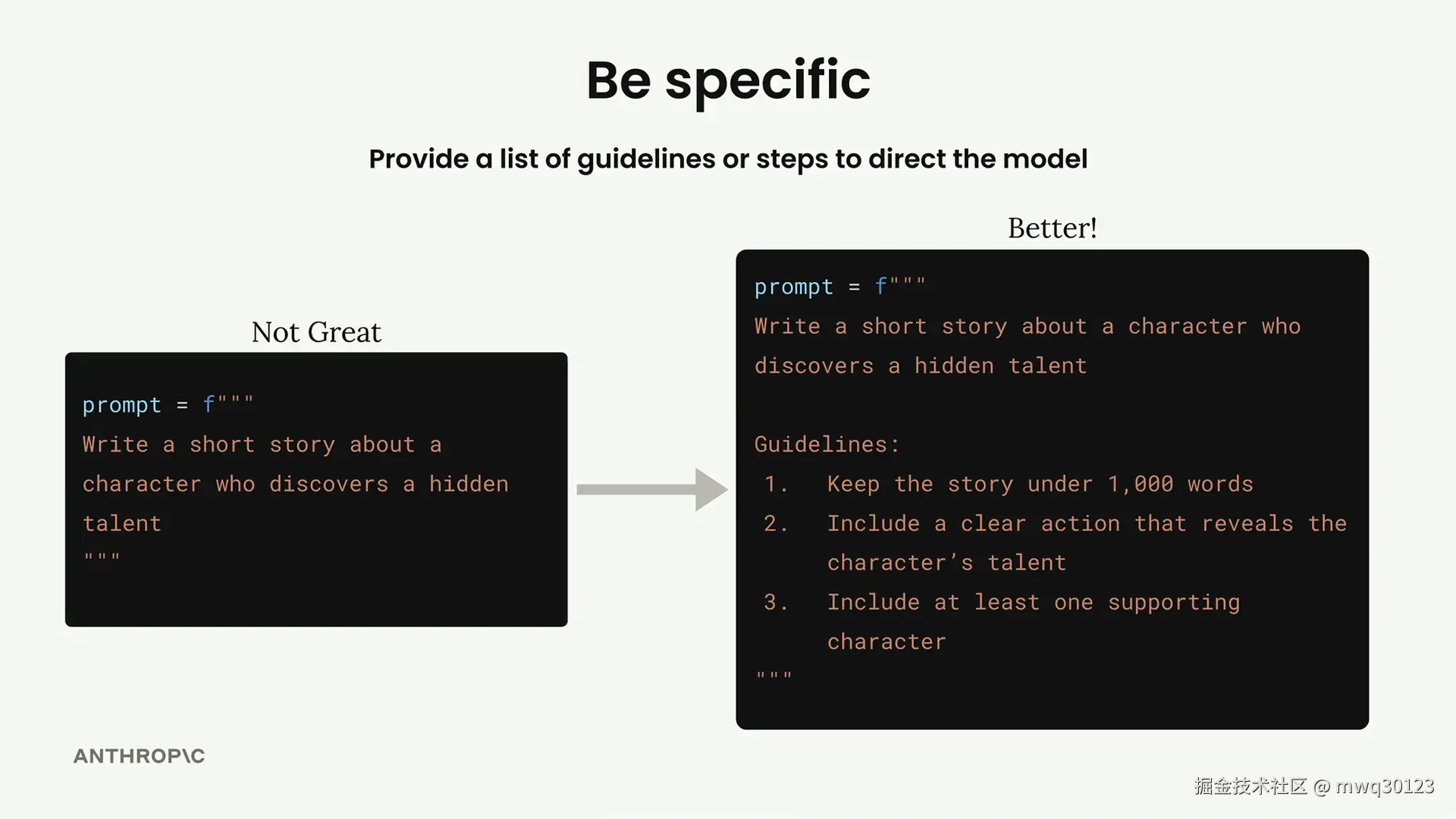 通过添加具体的指导原则,你为 Claude 提供了一个更清晰的目标。这显著提升了输出的一致性和质量。