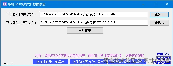 【相机DAT视频文件数据恢复】,这个工具可以在【天才小网管】公众号找到,或者直接网络搜索,或者在电脑端微信左上角的搜索框直接搜索软件名字,可以找到。