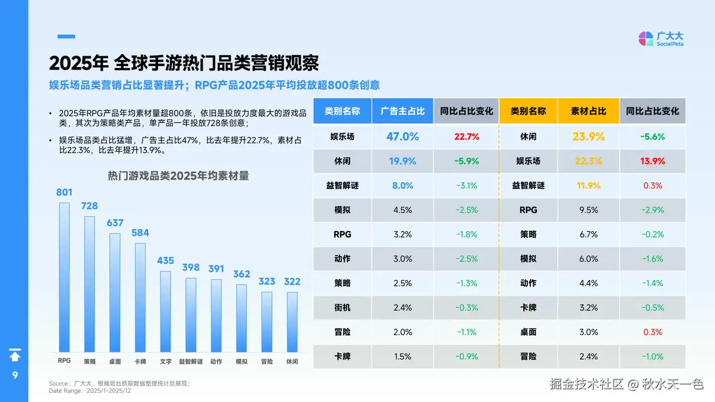 市场呈稳进分化态势,广告主规模、素材迭代率同比提升,娱乐场品类异军突起,视频短素材成主流。