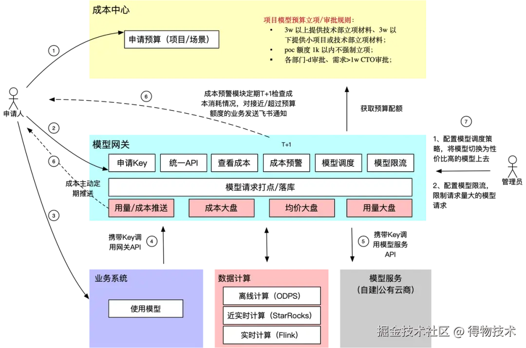 - 构建全流程成本管控体系。 通过预算与 API Key 申请自动化、用量监控、成本展示、超额预警与告警、智能调度、用量与成本大盘等能力,形成“预算申请—调用监控—预算预警—模型调度—费用查看”的闭环管控。