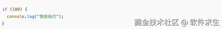 你可能会懵:“100 也不是 true 啊,为什么会执行?”