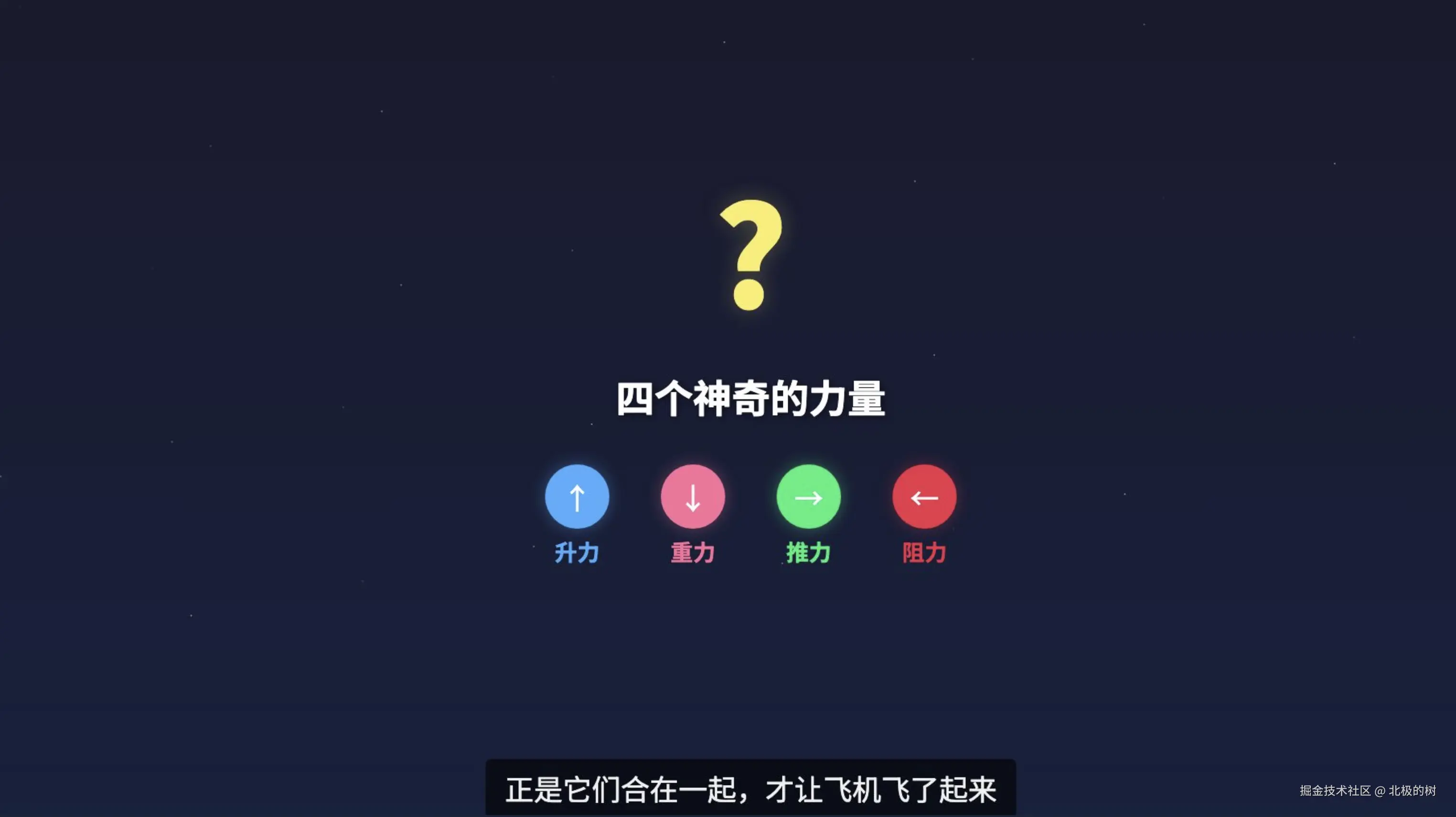 脚本里也会写简短的"视觉意图",比如"从侧面展示飞机,四个箭头表示四种力"。但不会写任何技术参数,坐标、帧号、动画配置这些都是分镜阶段的事。