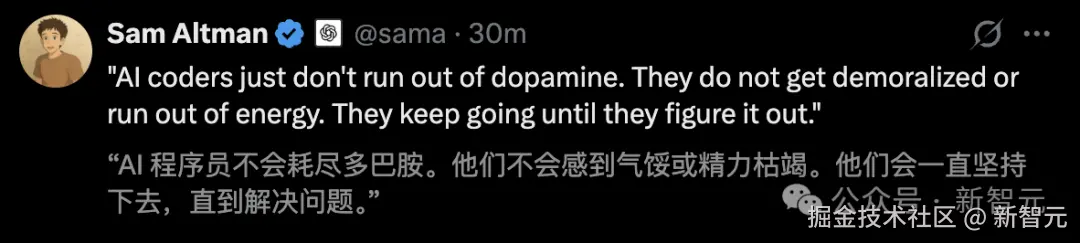 「AI 程序员就是不会耗尽多巴胺。他们不会感到沮丧,也不会耗尽能量。它们会一直坚持下去,直到解决问题」。
