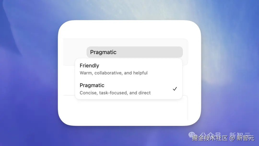 两者的能力完全一样,只为贴合你的喜好。只需在应用、CLI 和 IDE 扩展中输入/personality命令即可切换。