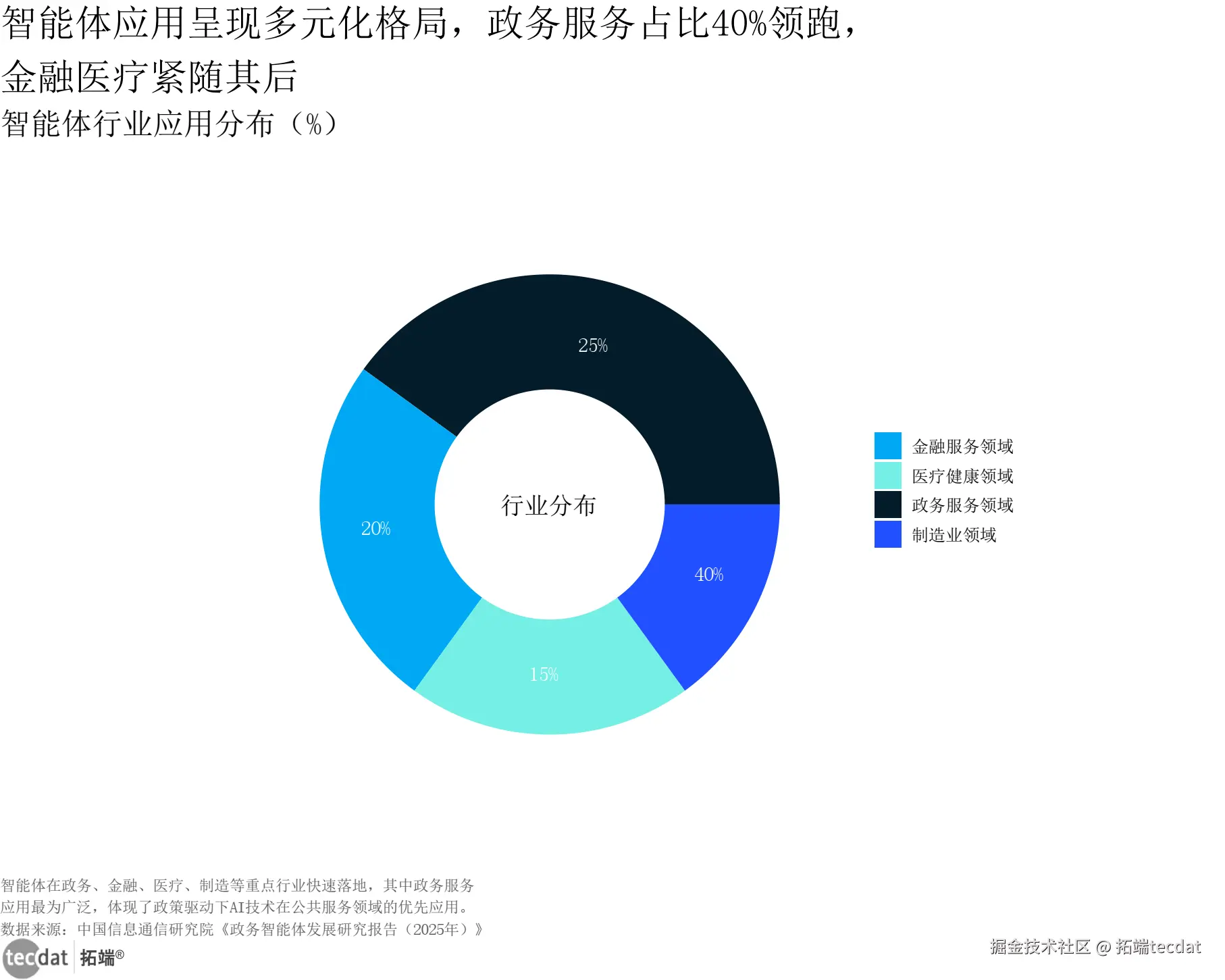 智能体应用呈现多元化格局,政务服务占比40%领跑,金融医疗紧随其后