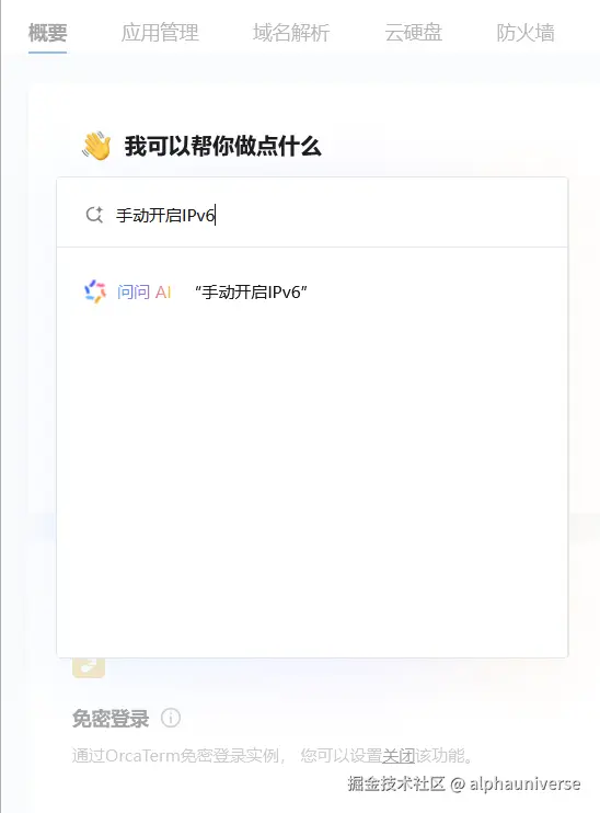 至于为什么要开启 IPv6? 一个原因是前文讲过了,通过http接入openclaw非常不安全,最好有个域名并开启 SSL 。如果实在没有域名,那么使用仅IPv6也能降低被端口扫描的概率。其次,如果部署在境外,想要使用telegram接入的话,ipv6的环境也能有更好的体验(听说的,未经核实)。
