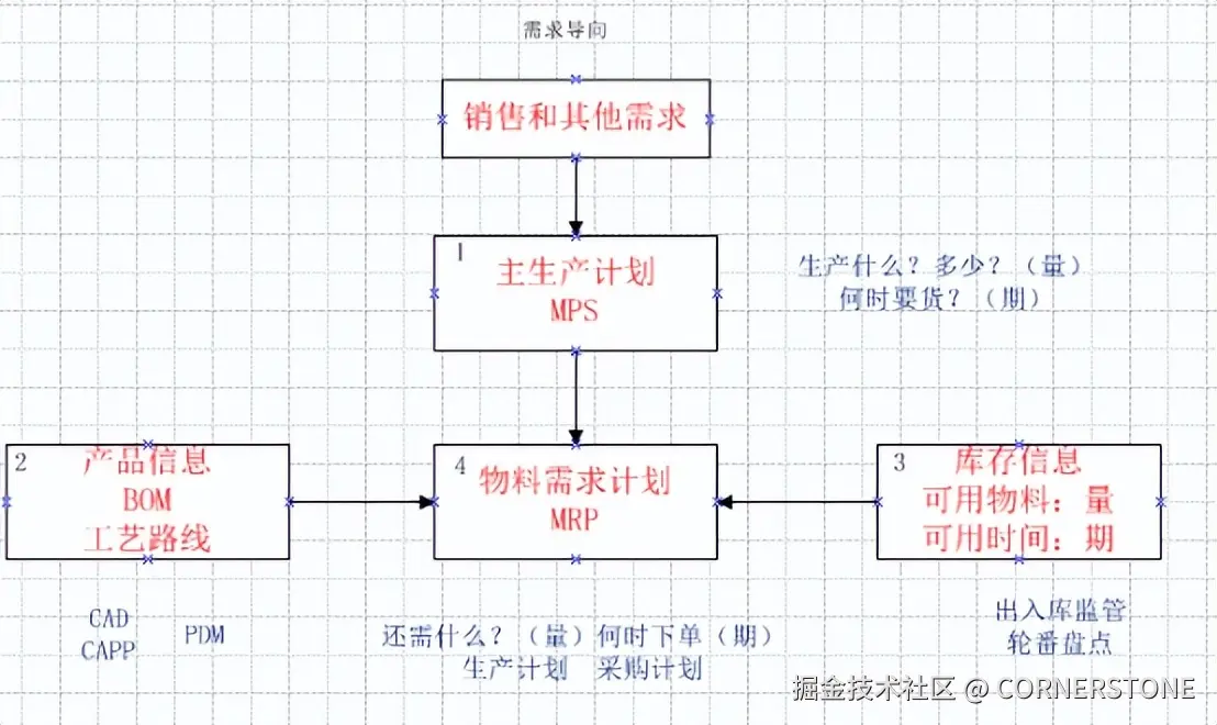 - MRPⅡ侧重功能管理,ERP则强调流程贯通。