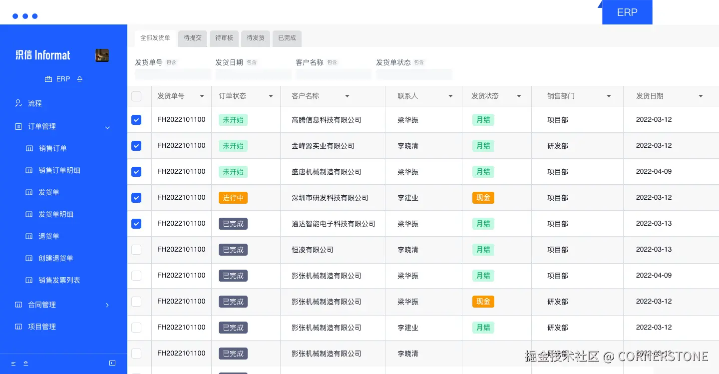 - ERP面向端到端业务流程,打破部门墙,实现流程一体化。