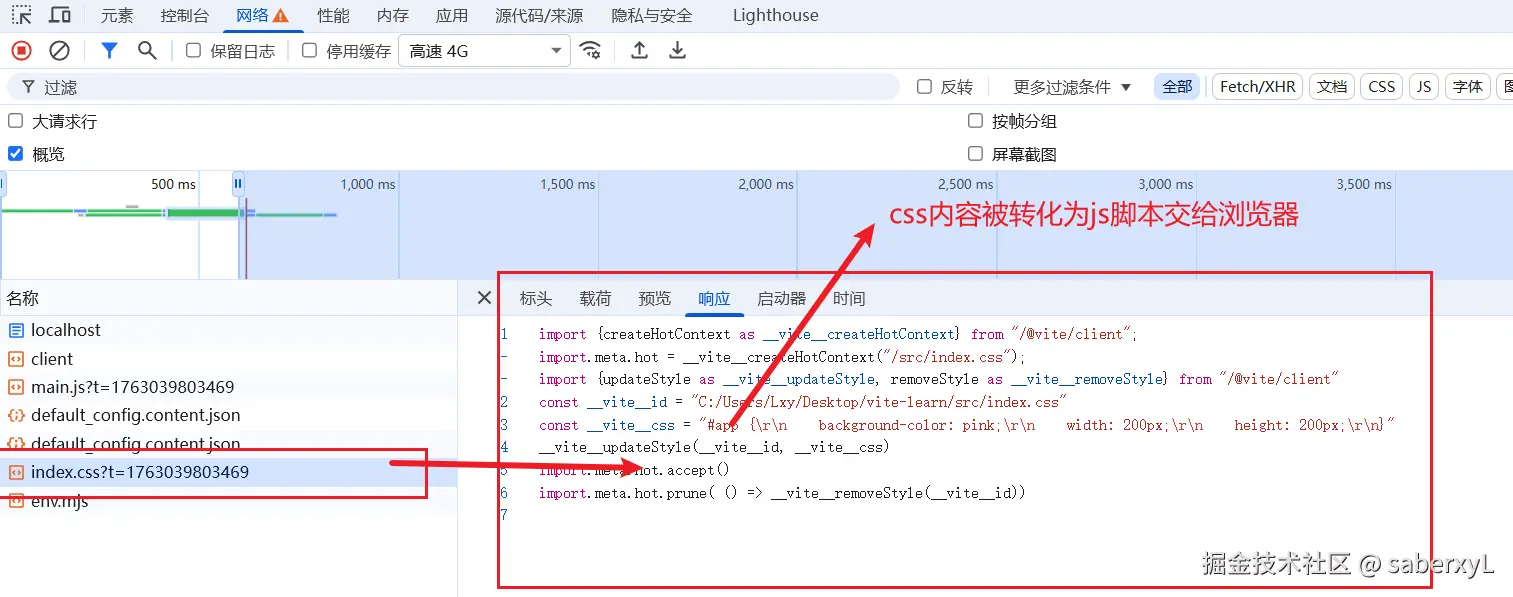 对于源码Vite通常将其打包工作交给了浏览器而不是打包,只在浏览器请求源码时进行转换并按需提供源码。