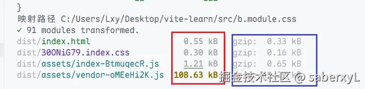 terser压缩(默认开启),移除空格、缩短变量名、合并语句等。 - CSS:使用