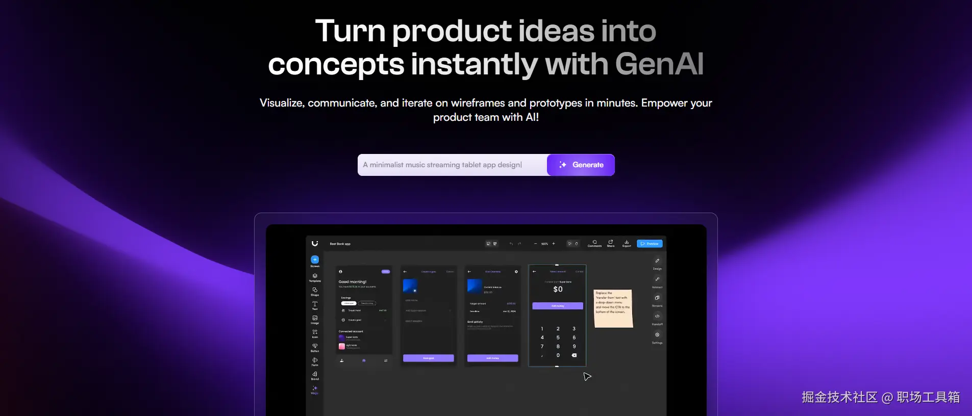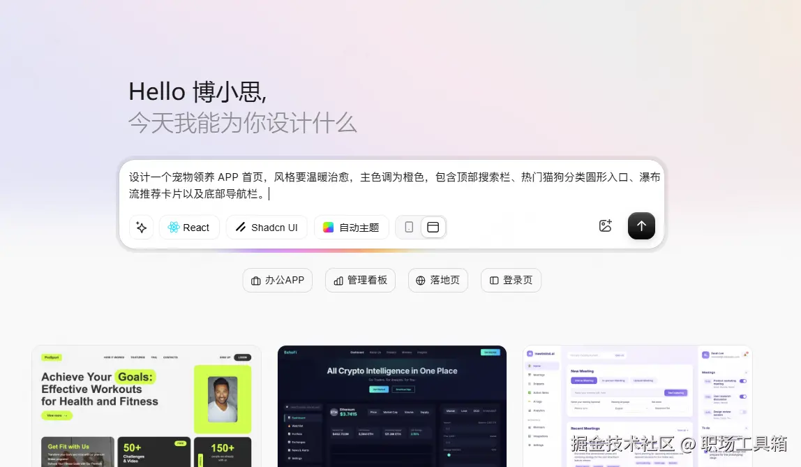 如果说 Uizard 是为了“快”,那 Galileo AI 就是为了“美”。它被誉为“UI 设计界的 Midjourney”,其生成的界面审美水平极高,甚至超过了许多初级设计师。