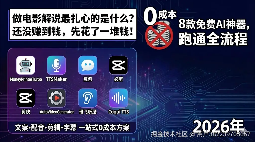 好消息是,2026年的AI工具生态已经足够成熟,完全免费或高额免费额度的工具,足以支撑你从0到1跑通整个流程。