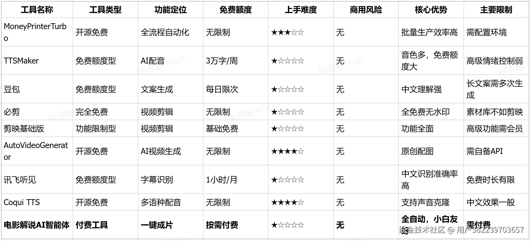 | 完全免费开源 | 无任何限制,可商用 | MoneyPrinterTurbo、Coqui TTS |