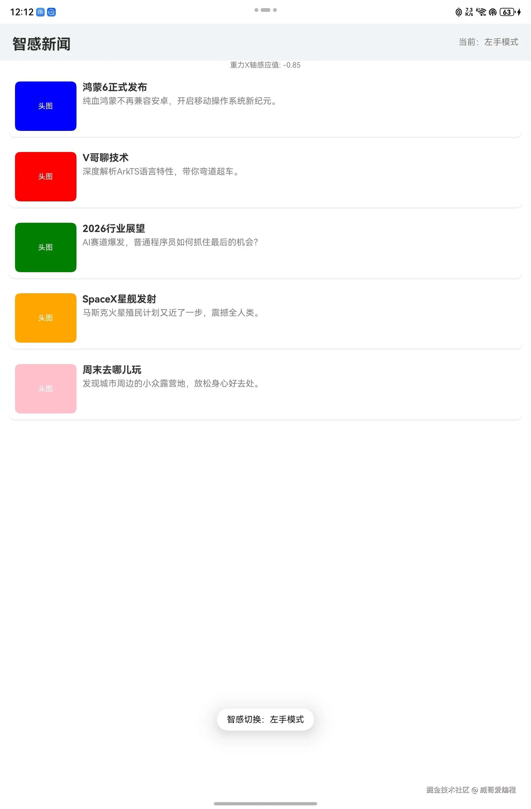 今天 V 哥就用一个新闻列表页面,带你 10 分钟搞定智感握姿的完整开发!能根据你拿手机的姿势,自动把图片和文字互换位置。代码全在一个页面,复制进去就能跑,绝对硬核!