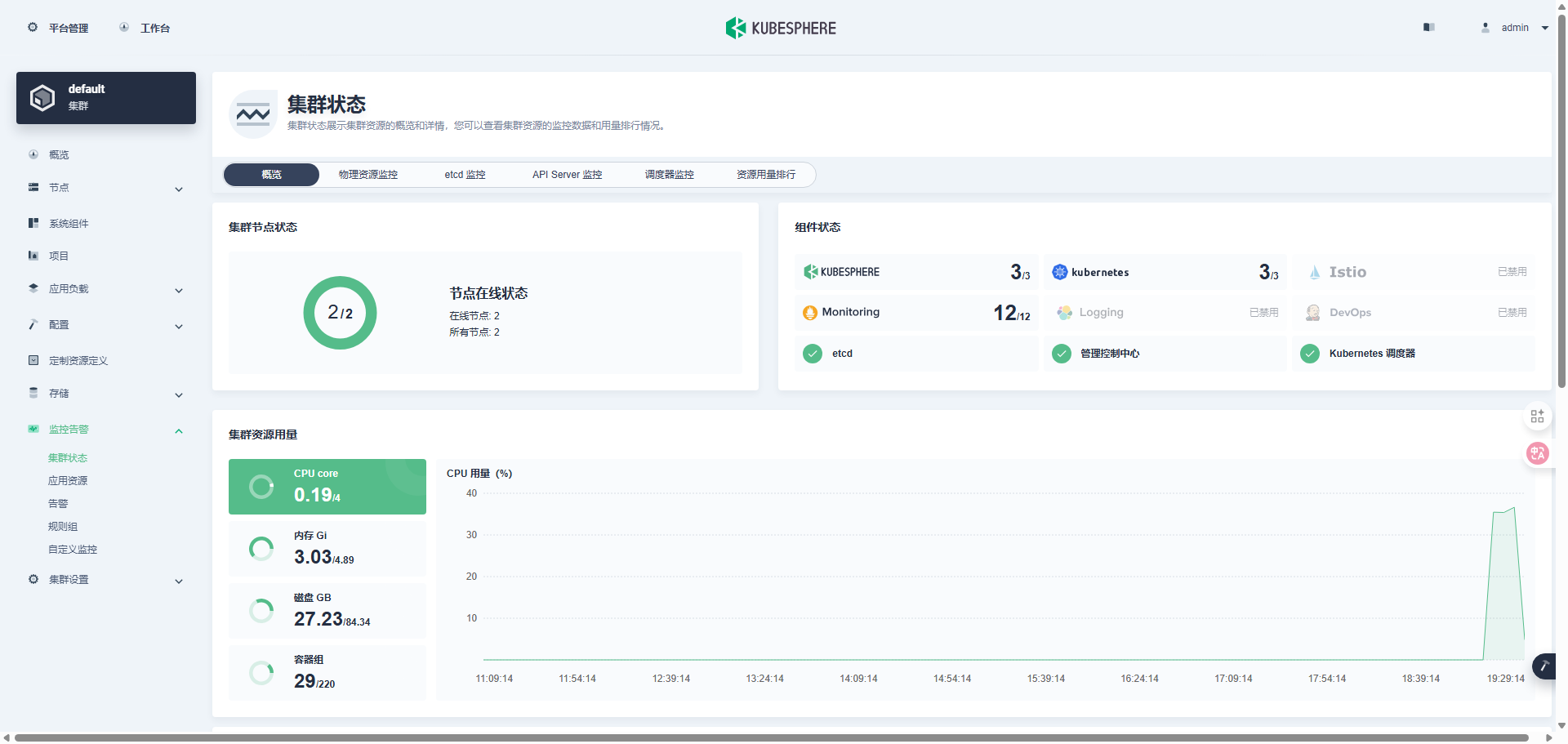 配置文件默认只安装了监控,如果需要安装其他组件,可以自行在自定义资源中开启