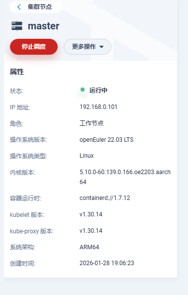 | node | arm64 | openEuler | 2核4G | 192.168.0.133 |