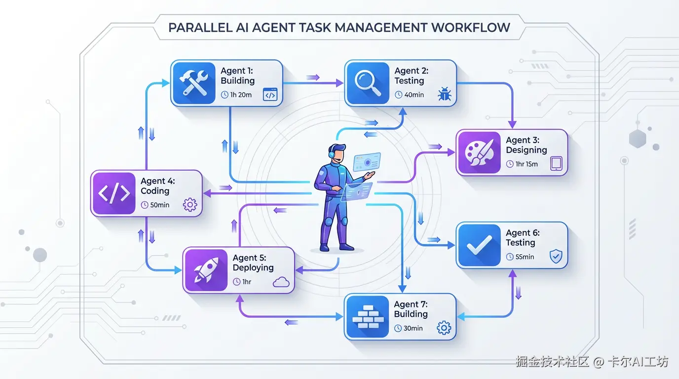 这哥们的工作方式像极了国际象棋大师的车轮战:同时开着5到10个AI Agent,在任务之间不停切换。设计一个新子系统?他知道Codex需要40分钟到1小时来完成构建,所以先把规划敲定、启动任务,然后立刻跳到下一件事。