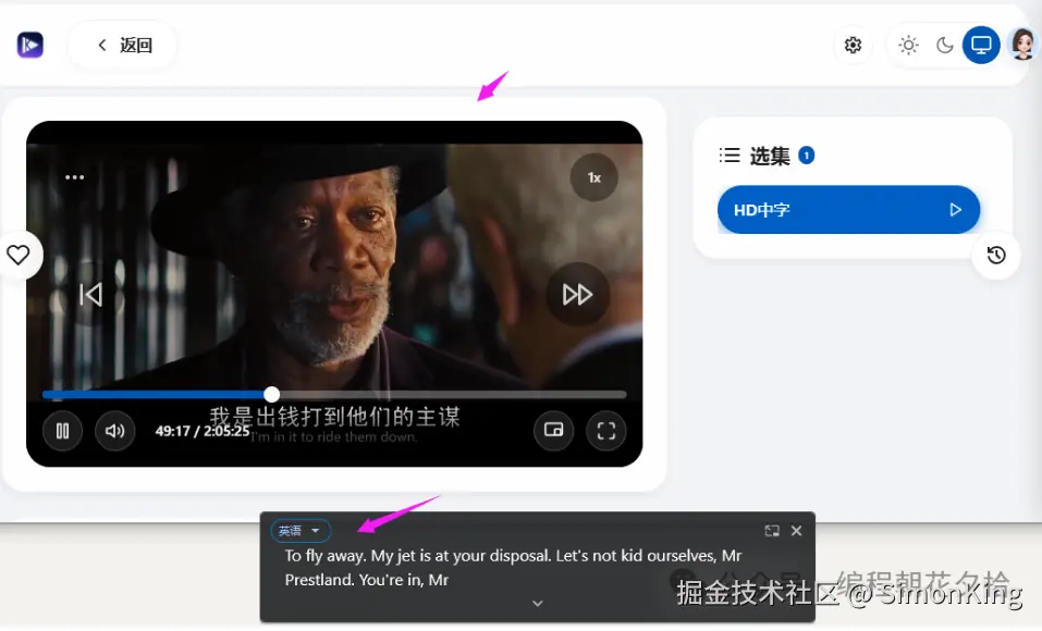 影片播放非常流畅,还有实时字幕,可以切换语言。