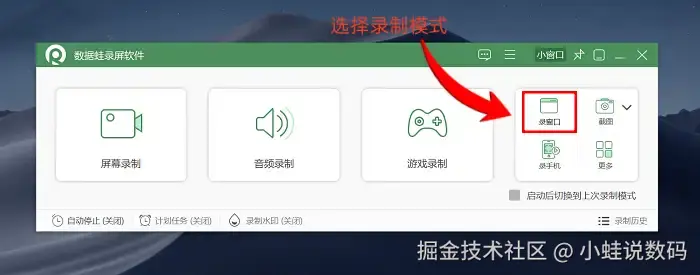 前往数据蛙官网获取软件最新版,启动后根据自身需求挑选合适的录屏模式;
