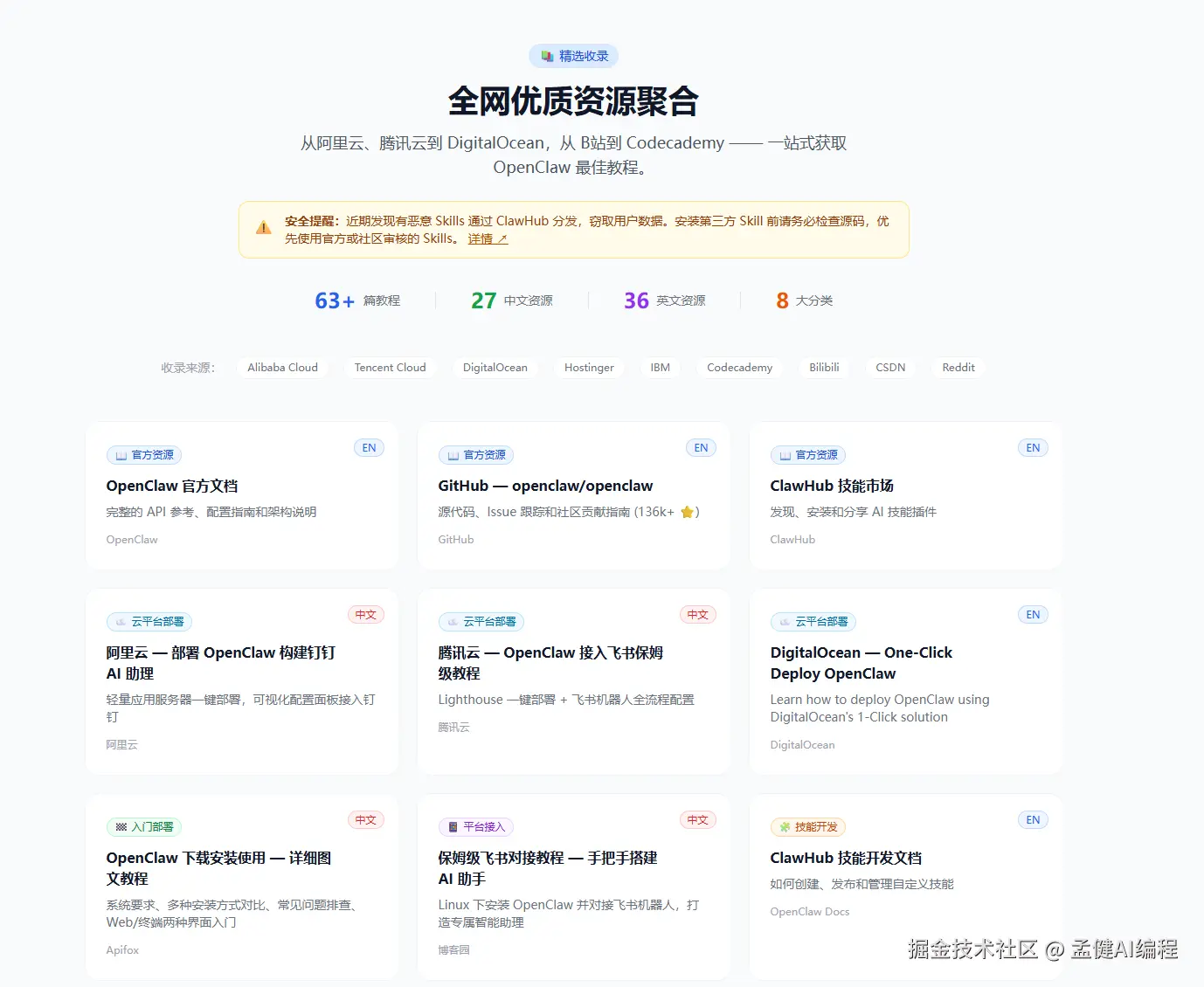 我把全网的 OpenClaw 教程扫了一遍,精选了 70 多篇 最有价值的: