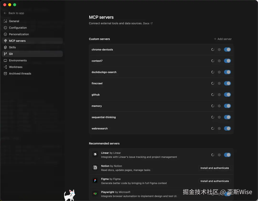 官方技能库包括Figma(设计稿转代码)、Linear(Bug分类)、Vercel/Cloudflare/Netlify(一键部署)等。团队还可以自定义技能,在App、CLI、IDE扩展间通用。