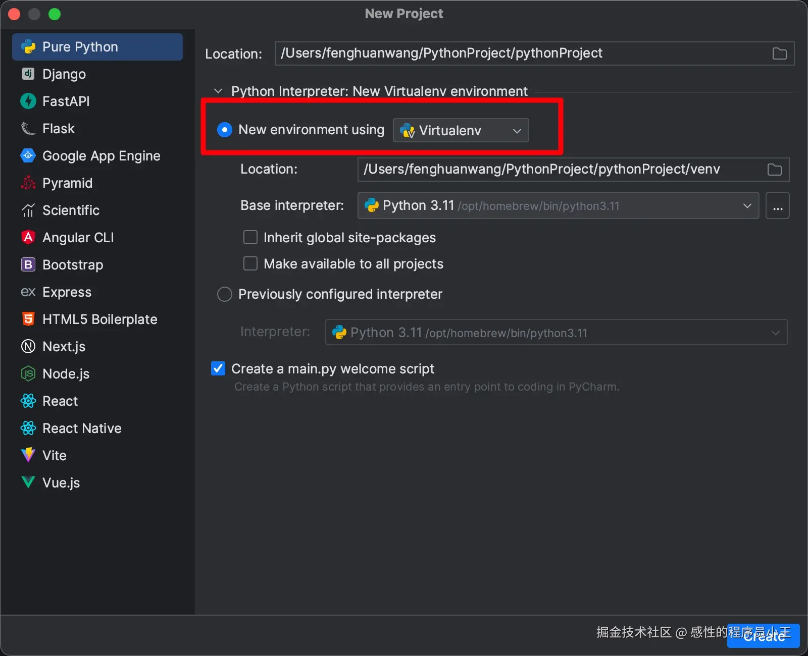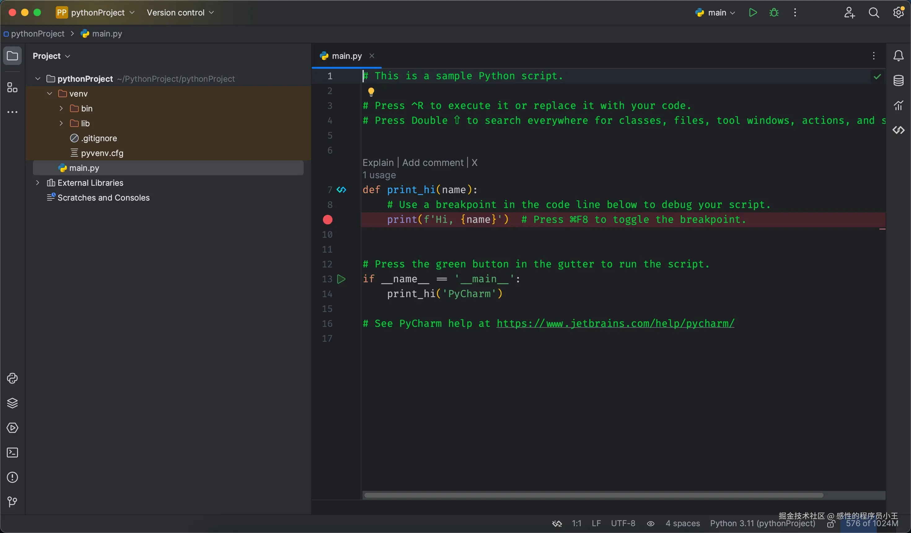 -首先准备好本地的 python 环境(3.11),使用 pycharm 创建一个 python 项目