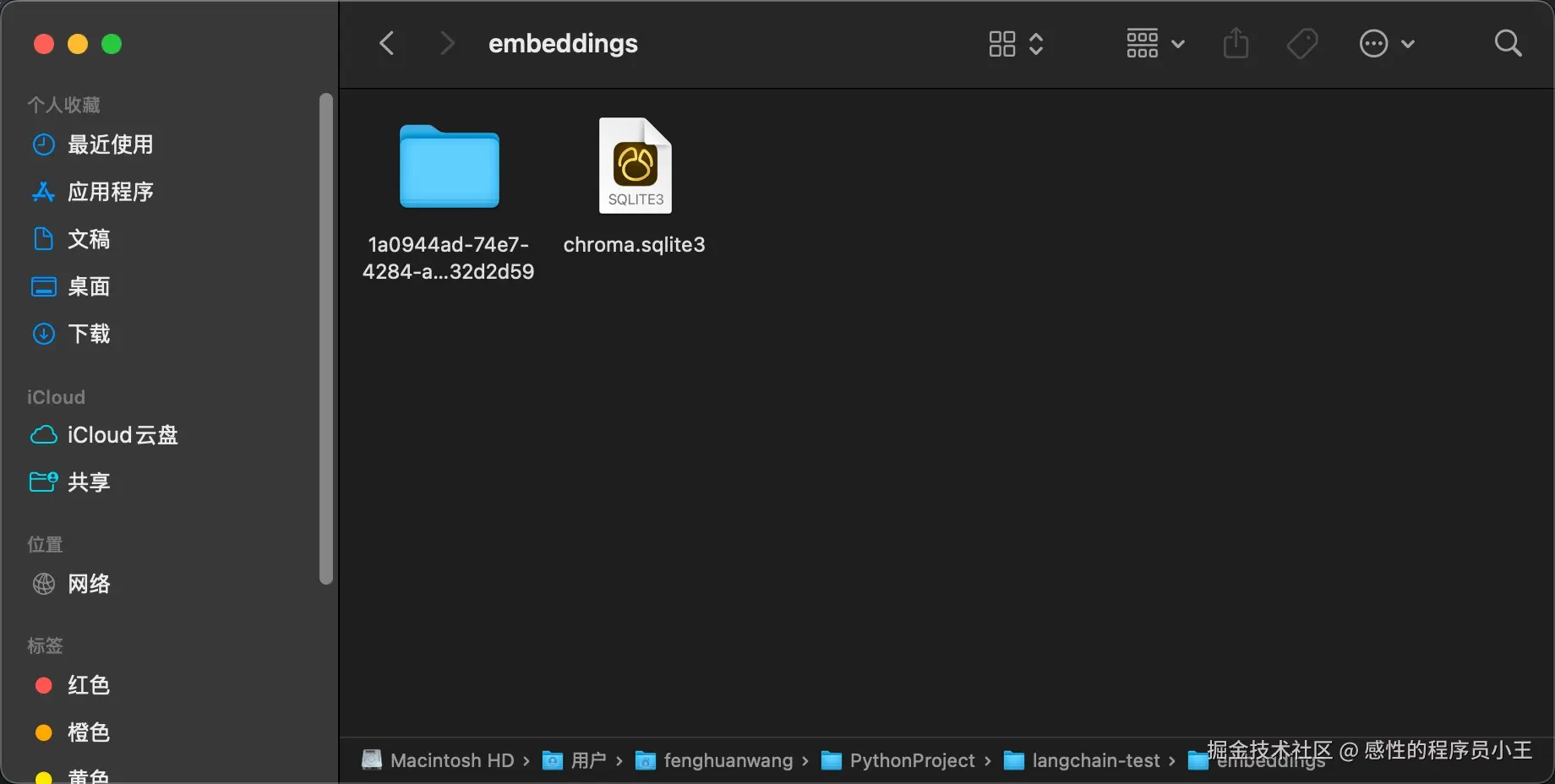 这是 Chroma 向量数据库使用的本地存储文件,基于 SQLite(一种轻量级嵌入式关系型数据库)。