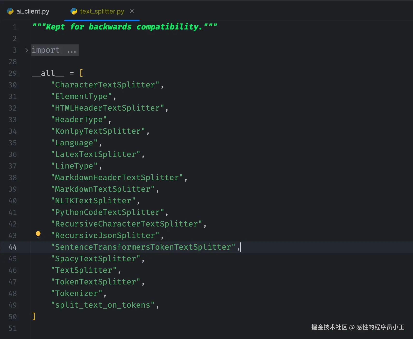 这是 LangChain 支持的一下几种向量数据库,可以通过源码查看,这里就不一一展示langchain_community.vectorstores 我们下面要聊的是Chroma这个向量数据库,当然也可以使用 pgsql 来进行向量的存储