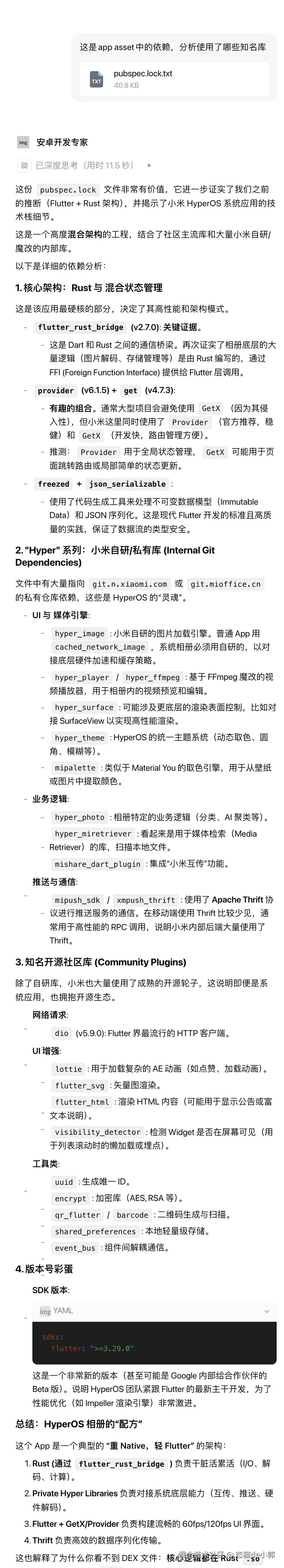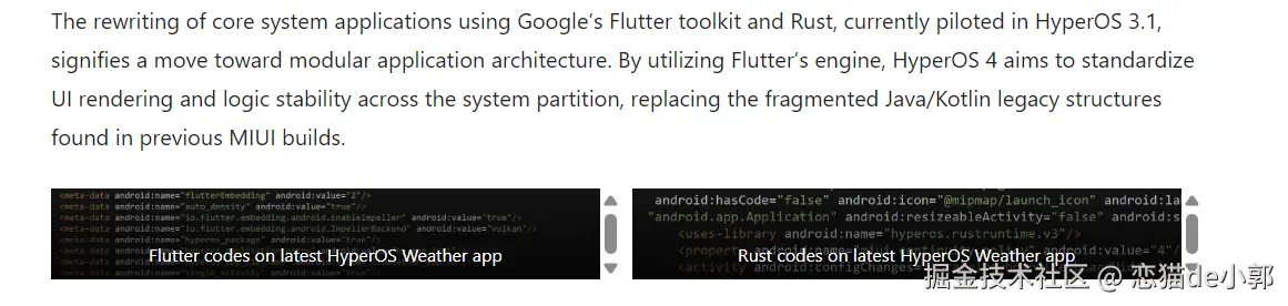 当然,最有意思的还是,针对系统核心应用,HyperOS 已经在使用 Flutter 和 Rust 重写,目前已在 HyperOS 3.1 中进行试点 ,按照它的说法: