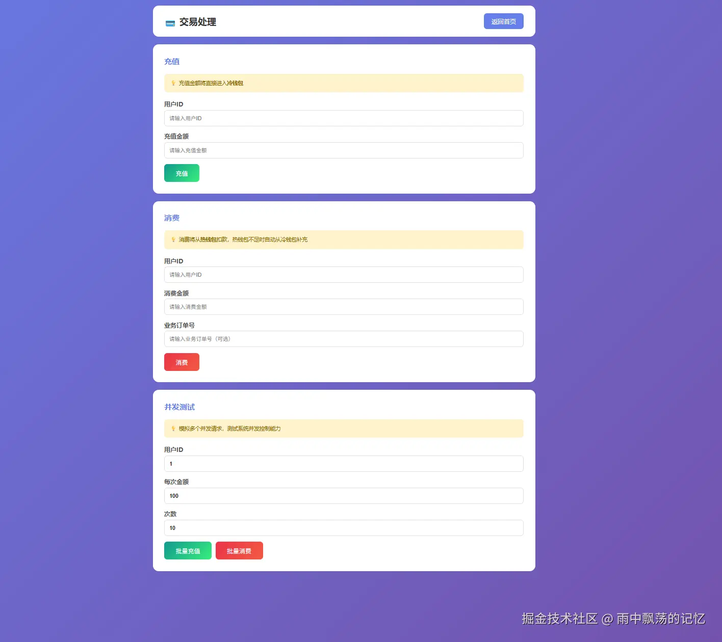 - 核心业务代码的实现(充值、消费、退款、调拨)