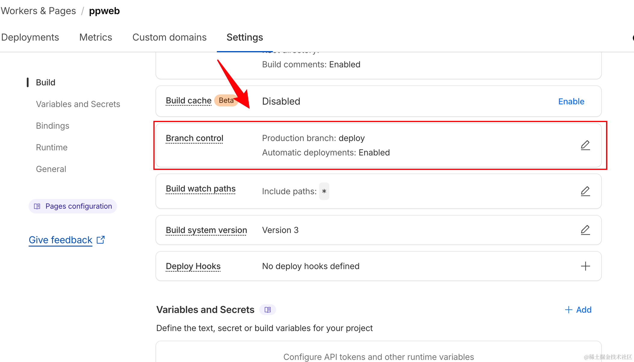 在设置里面,可以配置分支控制,生产分支就选你的生产分支,别的分支更新触发预览部署