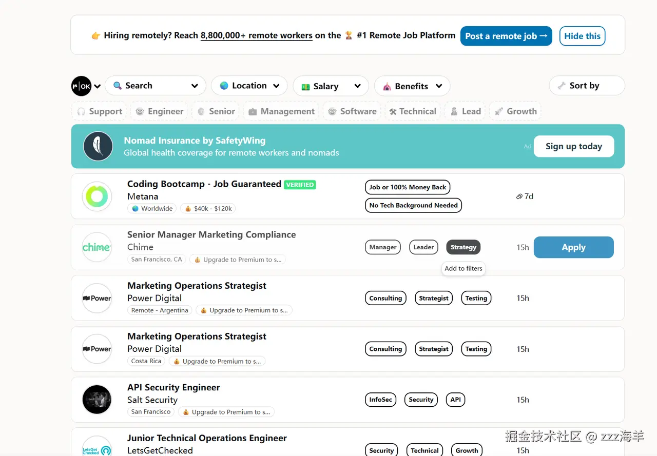 - RemoteOK: 更偏向于远程全职或长期兼职(Part-time)。适合技术栈匹配欧美初创公司(如React, Python全栈)的开发者。虽然时差是个问题,但客户通常较为专业,协作流程规范。