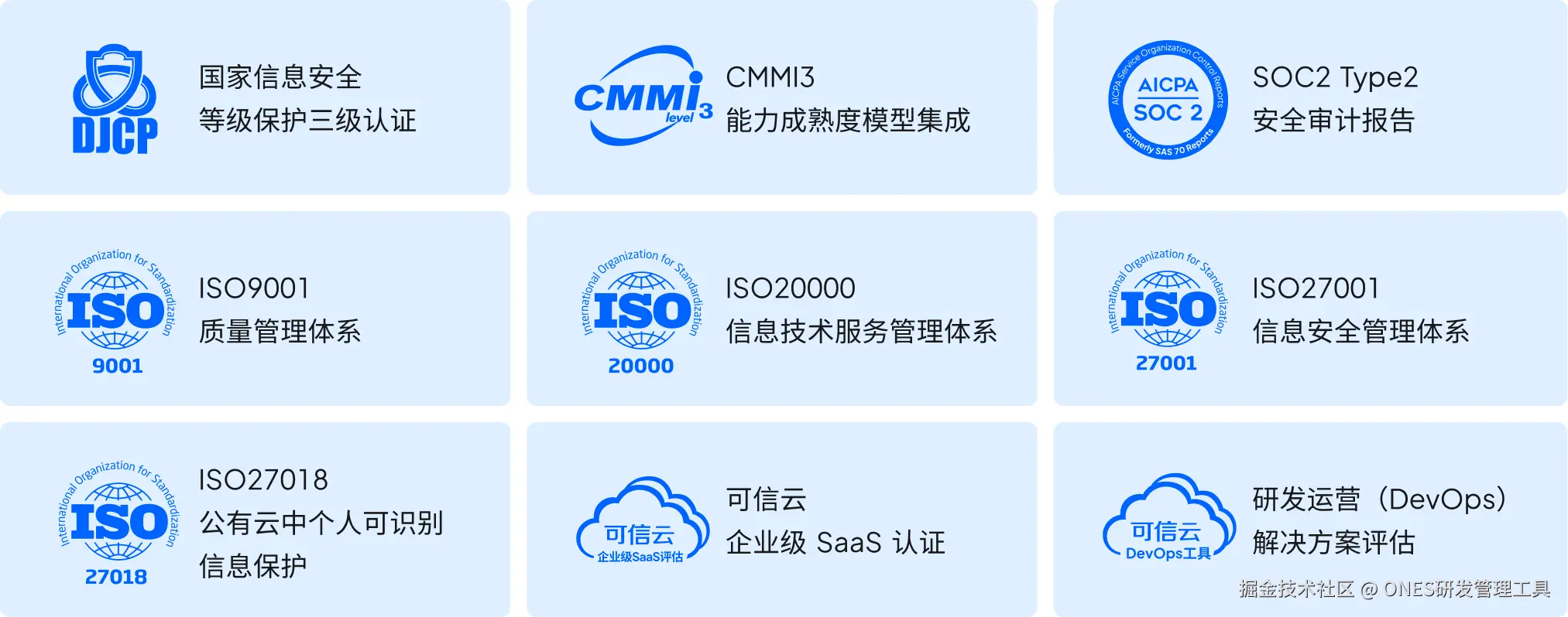 权威完备的安全背书:ONES 已通过 SOC2 Type II 安全审计,并持有等保三级、ISO 27001、ISO 27018 等多项国内外权威认证,从基础设施到应用层全方位构建安全防线。