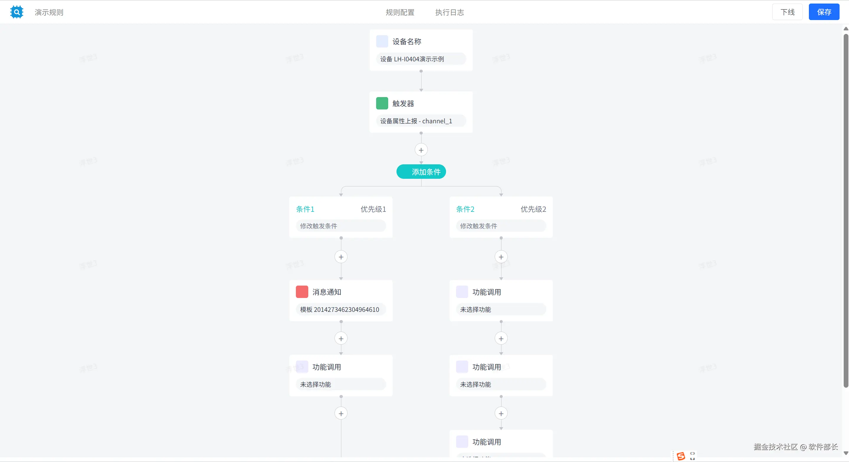 通过点击“+”可以增加条件触发器的执行节点,点击添加条件可以增加不同条件下的支持链路