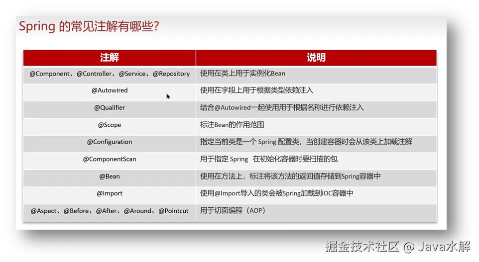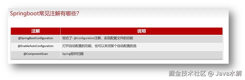 SprintBoot项目中的启动类上有一个注解@SpringBootApplication,这个注解封装@EnableAutoConfiguration注解:用来启动SpringBoot的自动配置机制,通过@Import 导入了 AutoConfigurationImportSelector , 在SpringBoot启动时,会扫描META-INF/ spring.factories文件(springboot2)/ AutoConfiguration.import(springboot3),文件里列出了所有自动配置类的路径位置,配置类通过各种@Conditional条件注解动态加载满足条件的bean,将其导入到Spring容器中;