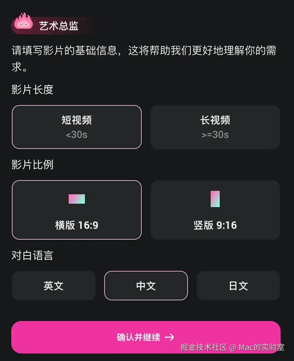 这个流程其实是比较久的,因为后面要选择想要的比例、画风、语言之类的,重新设计剧本,然后再进入到人物的设计,分镜的生成等流程,这些流程是会自动完成的,中间只需要看一下,确认一下,选择一下就可以。