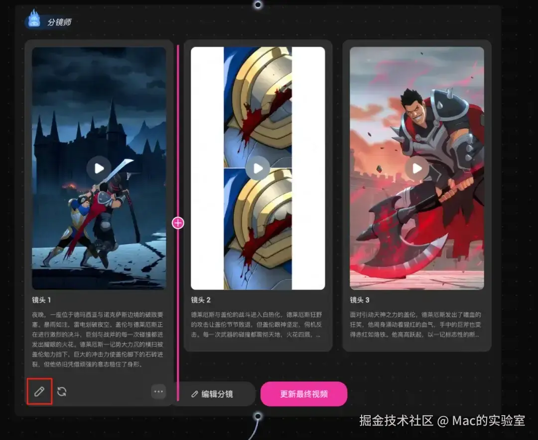 - 编辑分镜:点击分镜图中的“编辑分镜”,即可进入分镜编辑修改页面:
