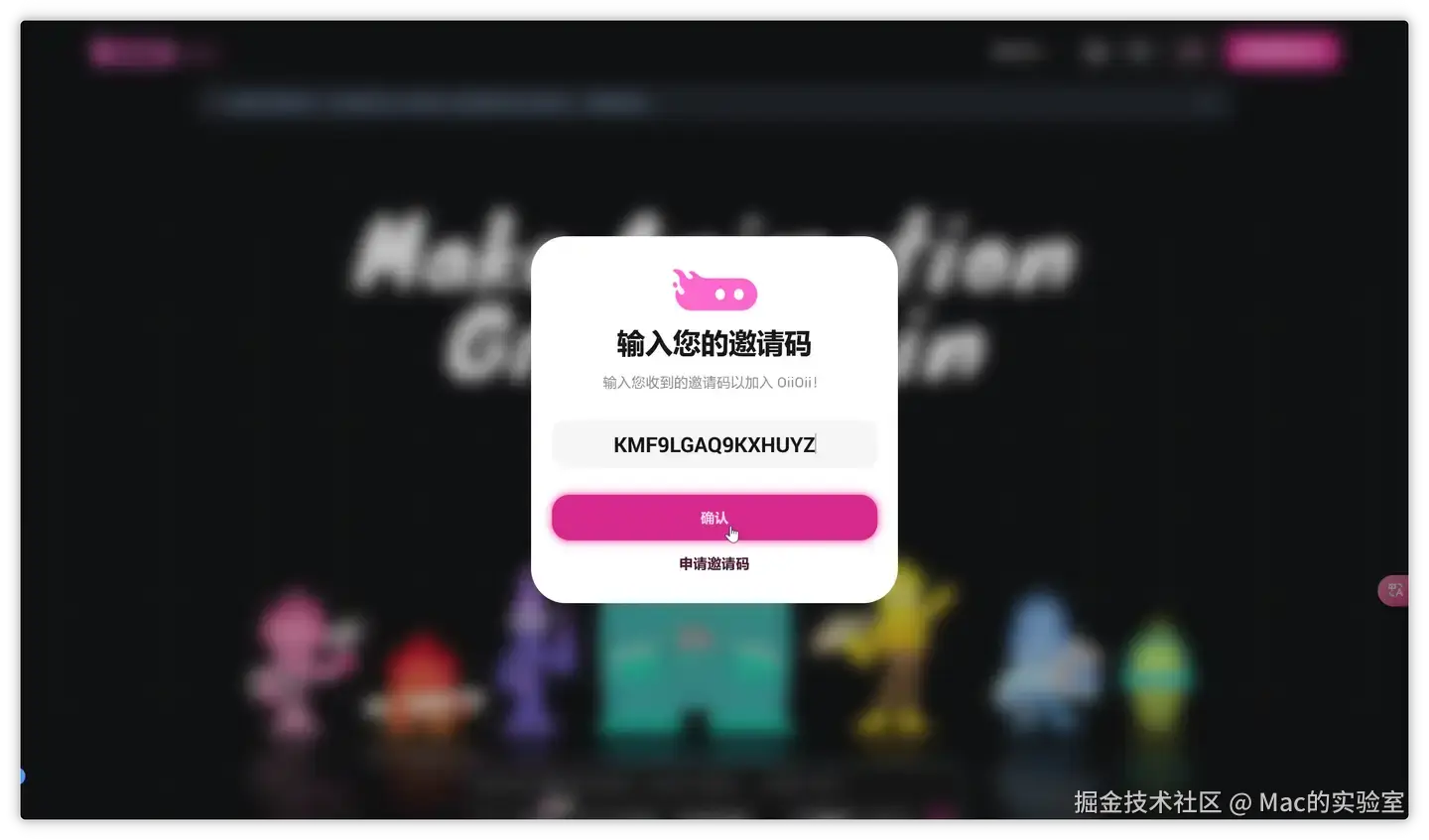 填写你的身份介绍,社交媒体链接,个人微信和邮箱等信息申请官方内测邀请码,这个需要官方审核一段时间,通过后才能发放。觉得麻烦不想折腾的同学可以在公众号:Mac的实验室 后台回复 oii 获取最新的邀请码入口。