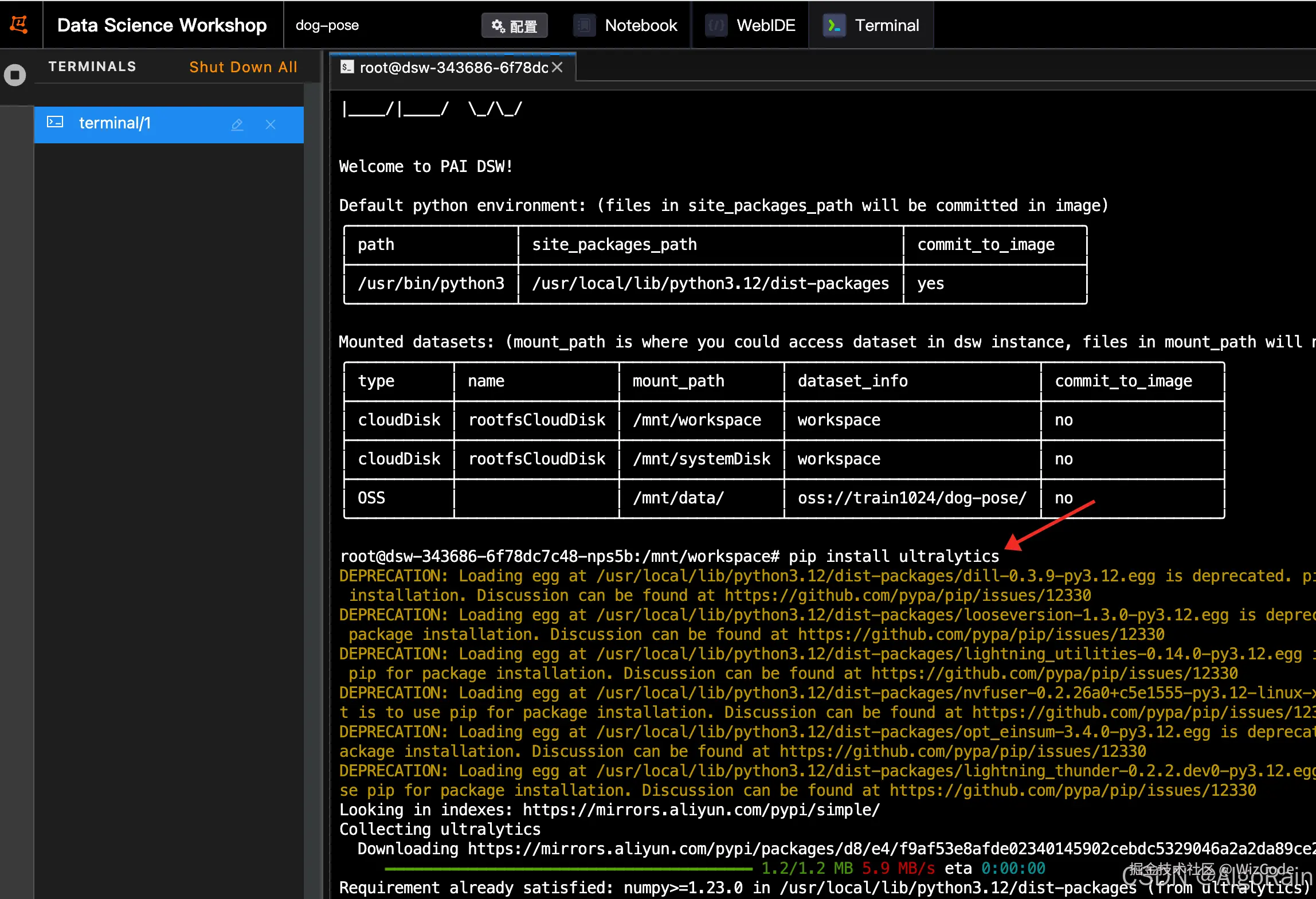 先到terminal中安装ultralytics,其他python环境已经都有了