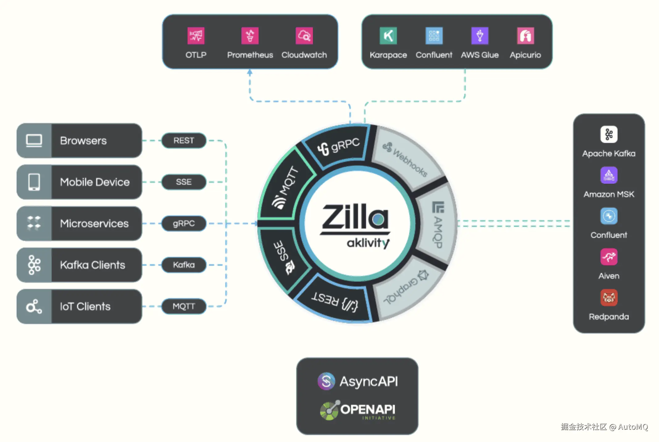 AutoMQ 的无状态云原生 Kafka 平台现已深度集成 Aklivity 的多协议网关技术。此次战略合作结合了 AutoMQ 在打造低成本、高弹性 Kafka 解决方案方面的技术积累,以及 Aklivity 在多协议网关领域的领先能力,旨在赋能企业轻松打破系统孤岛,构建驱动业务持续增长的下一代应用程序。