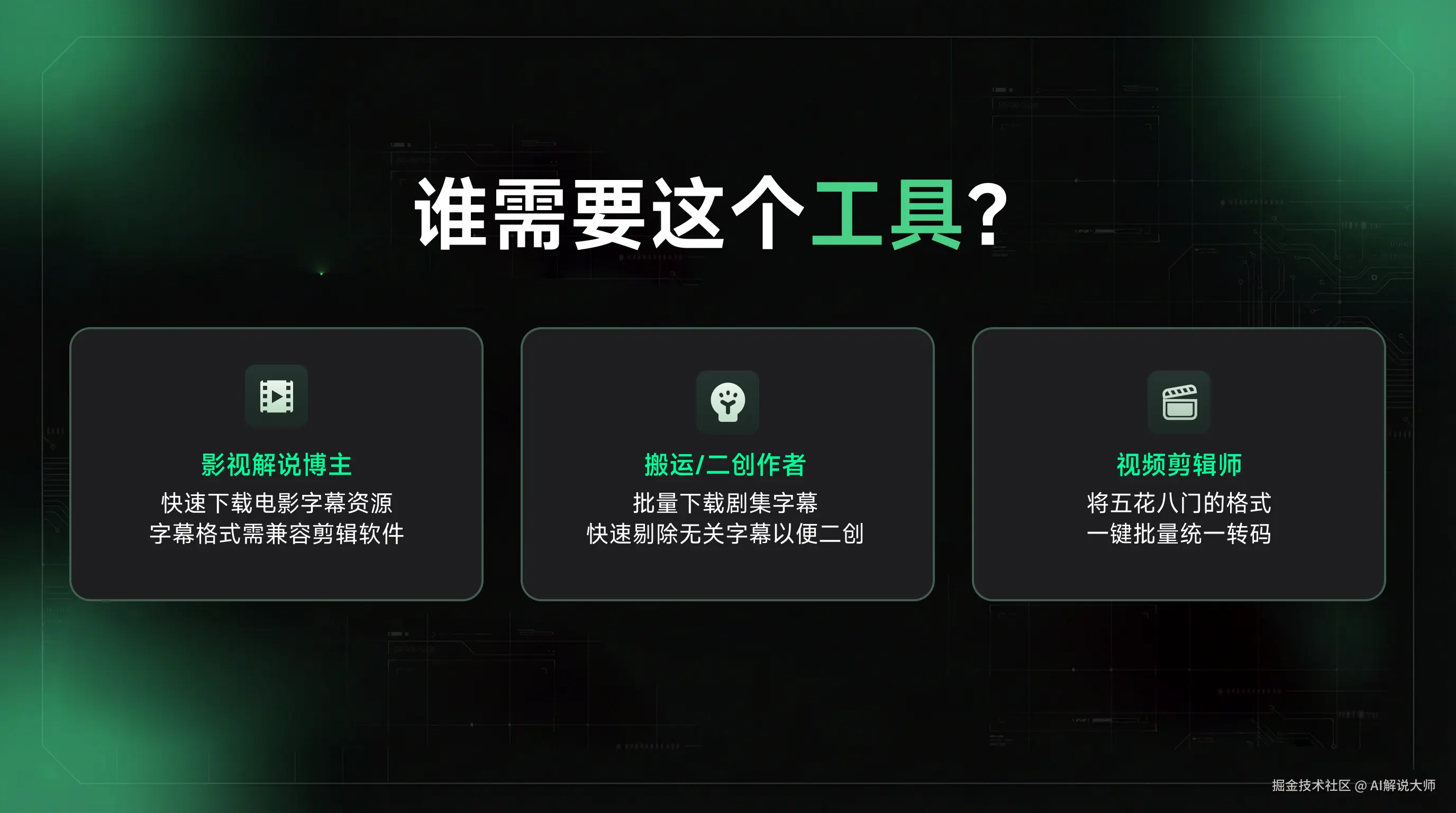 这个工具叫AI 解说大师的字幕下载转码器,主要解决三个问题:在线搜索下载字幕、批量转换字幕格式、中英双语字幕分离。下面说说我的实际使用体验。