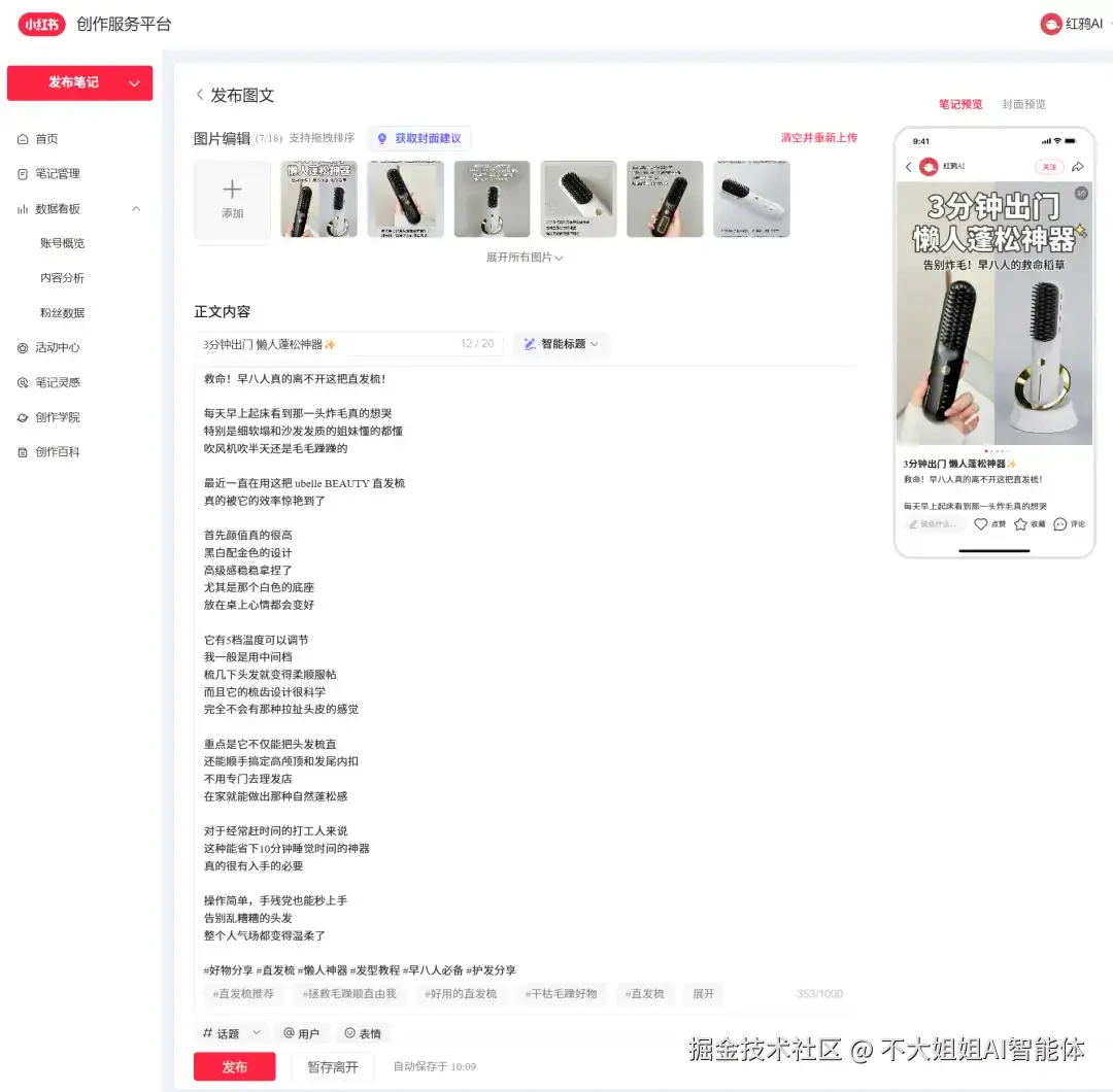 第四步:支持手机端、浏览器一键发布。 预览无误后直接保存发布。这种效率,一个熟练工同时打理 10 个号都不成问题。