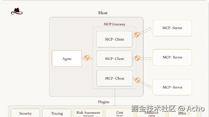 | MCP Gateway | ← 拦截器鉴权、限流、签名验证