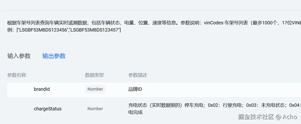 + "参数说明:vinCodes-车架号列表(17位VIN码,最多200个)。"