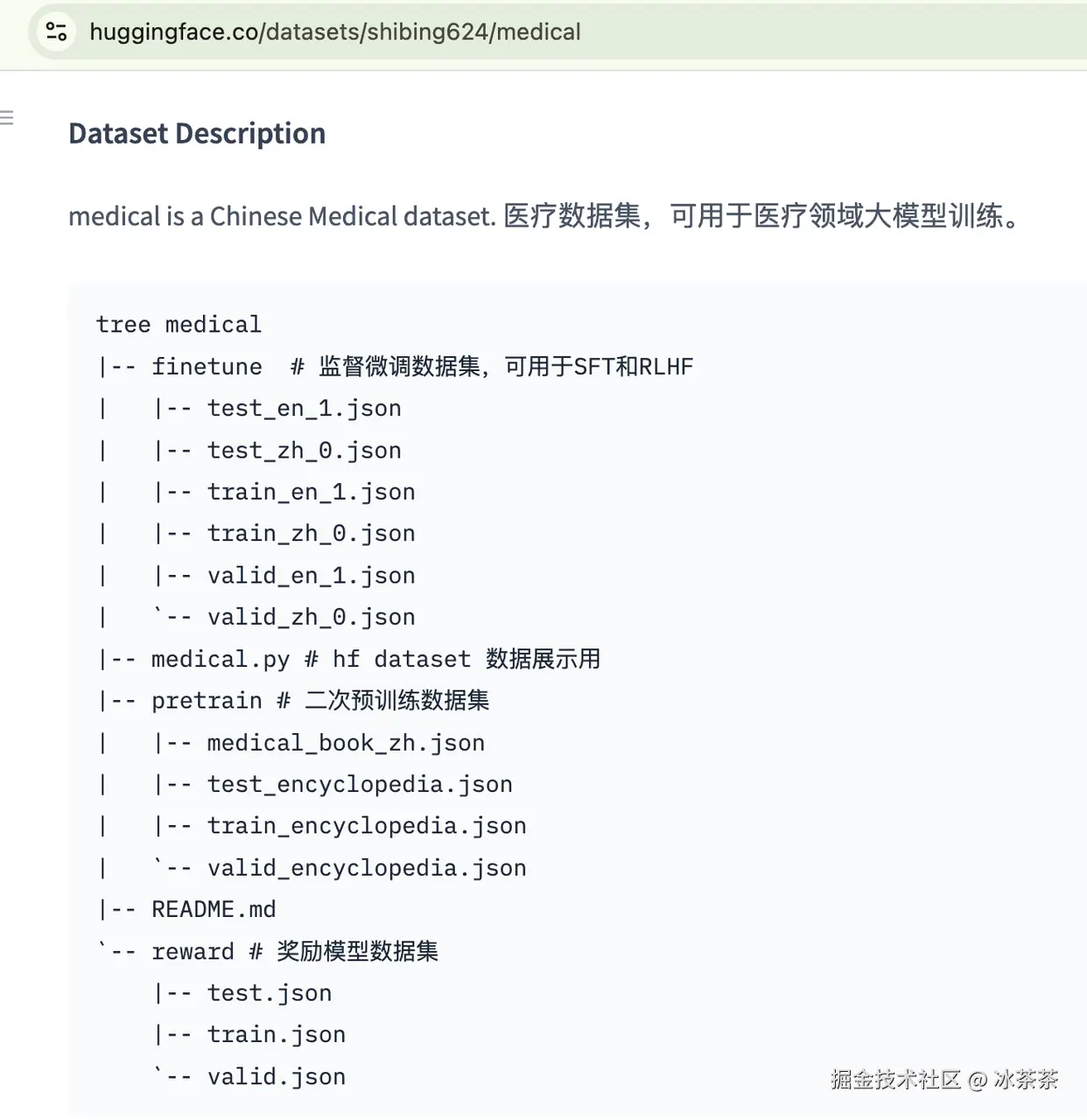 我的个人电脑也没有这么大的算力,虽然可以使用诸如 colab 之类的平台争取一些免费计算资源,但是我还是决定先在本地先行跑一个流程,所以我选取了一个非常小的关于医疗方面的数据子集(shibing624/medical,源自Huggingface:huggingface.co/datasets/sh…