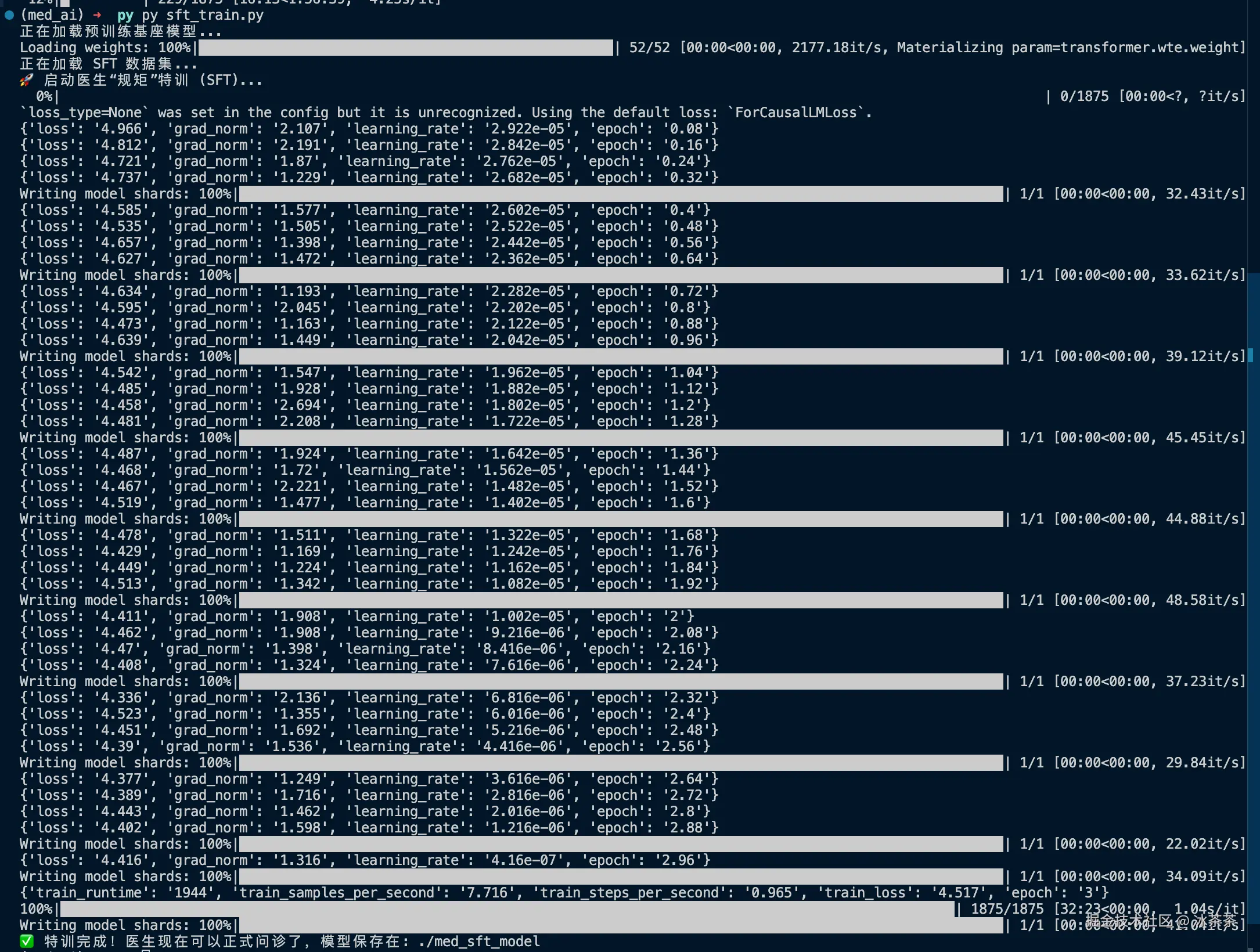 SFT完成截图: