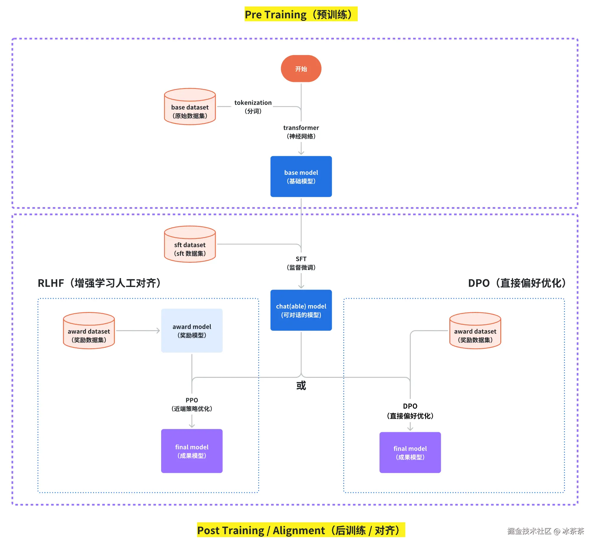 简单地用流程图表示一下一个大模型的训练流程: