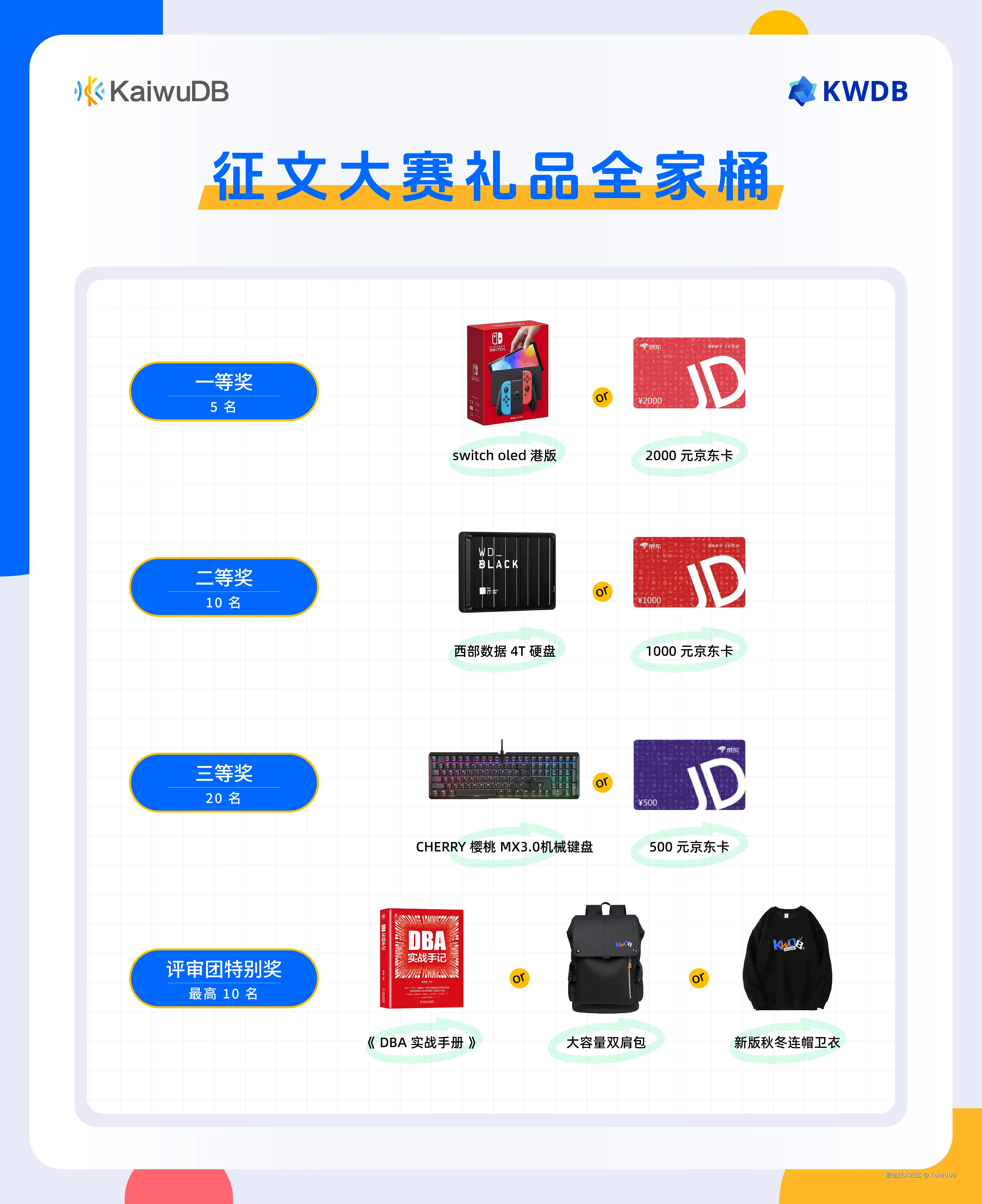 我们精心为大家准备了丰厚的奖励,诚邀每一位热爱技术、乐于分享的你,与我们一同书写分布式多模数据库的未来篇章🌟!