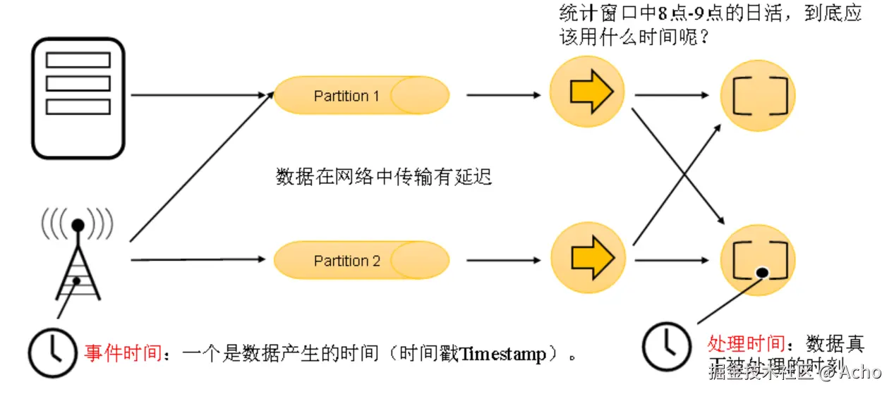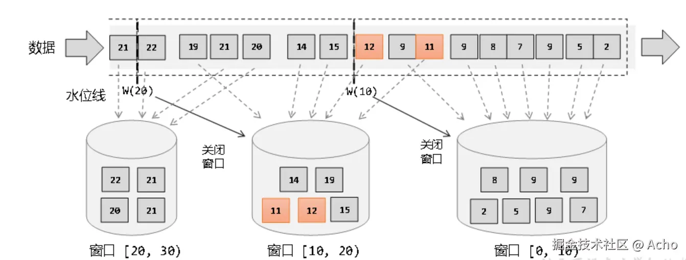 - 事件时间 + 水印(处理乱序)
