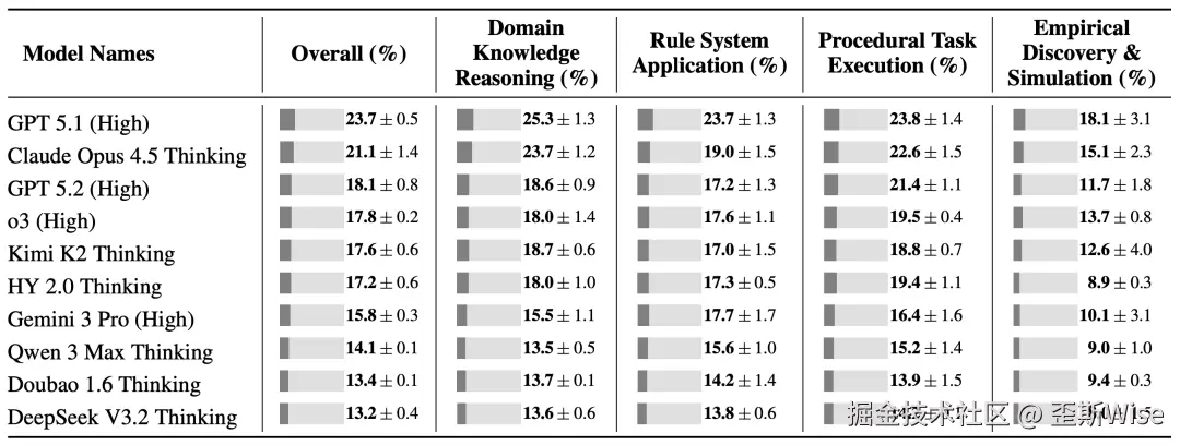 但这个低分,却是GPT、Claude、Gemini、Kimi、Qwen这些前沿模型中的最好成绩,这些模型平均分仅为17.2%。